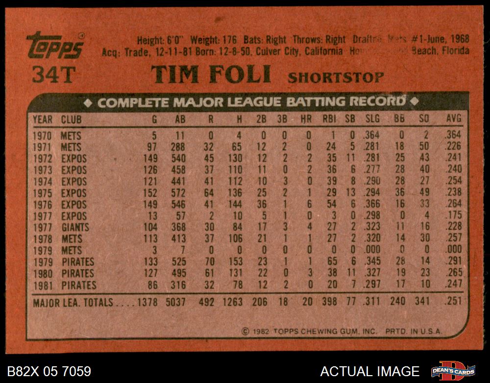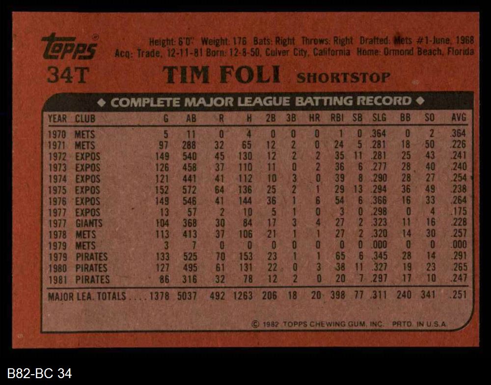 1982 Topps Traded #34 T Tim Foli