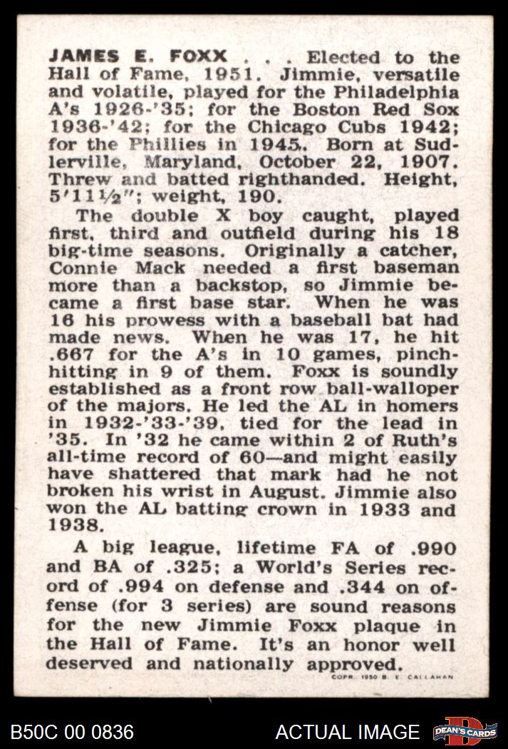 1950 Callahan Hall of Fame Jimmie Foxx