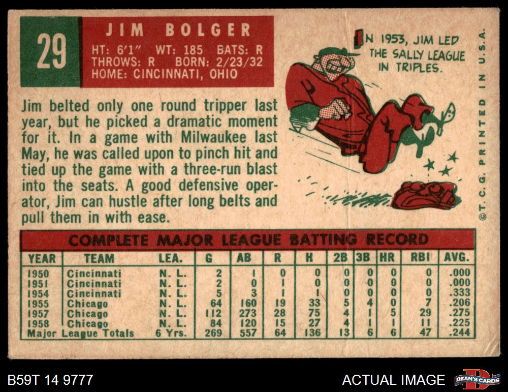 1959 Topps #29 Jim Bolger 2 - GOOD