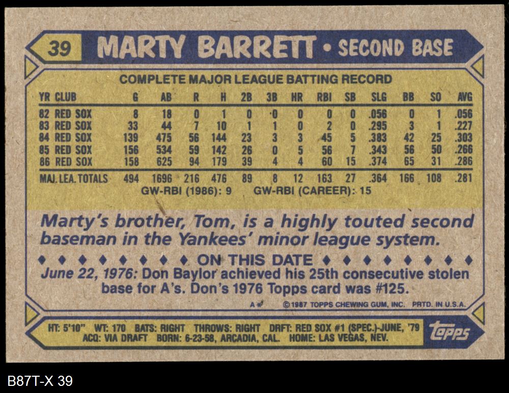 1987 Topps #39 Marty Barrett