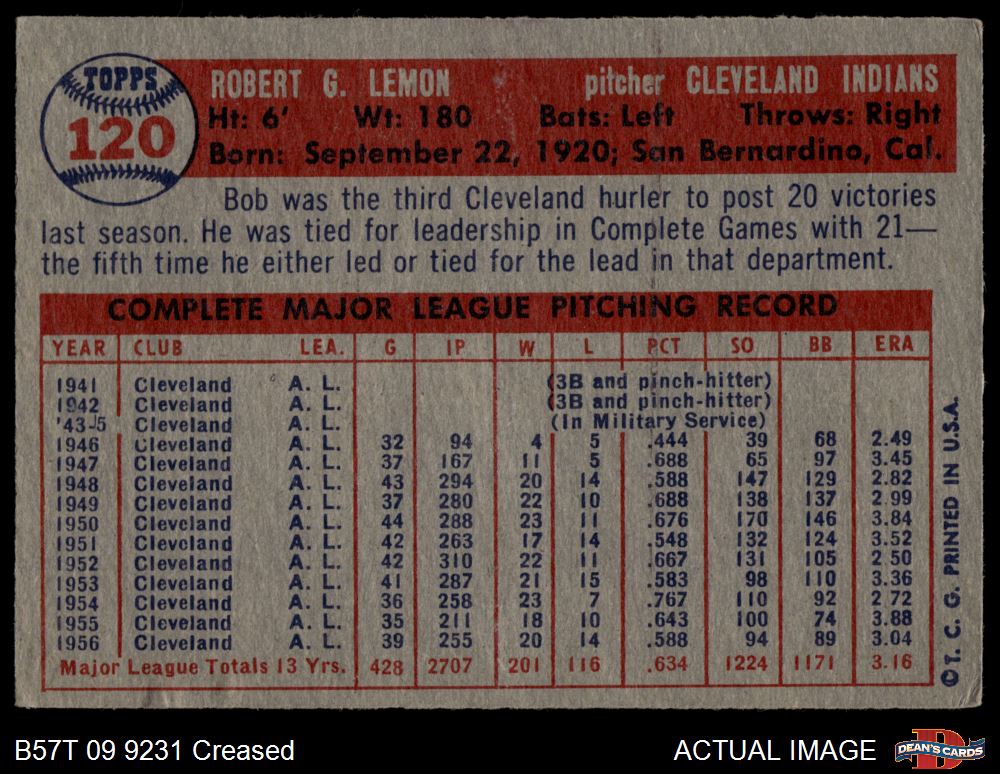 1957 Topps #120 Bob Lemon Front Thumbnail