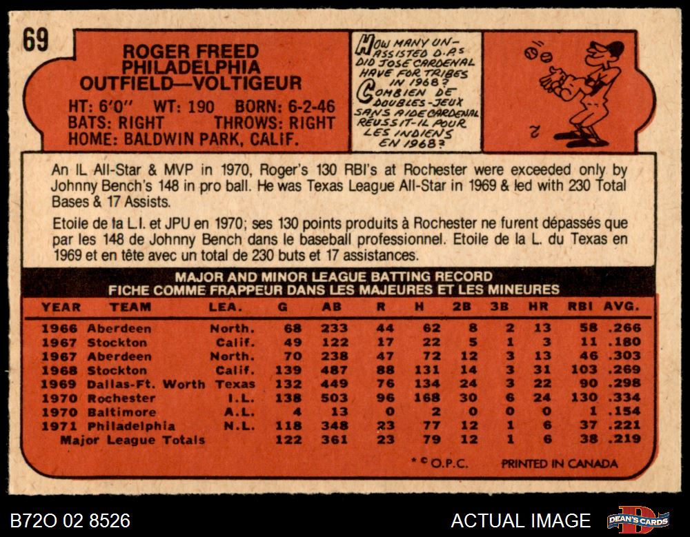 1972 O-Pee-Chee #69 Roger Freed 6 - EX/MT