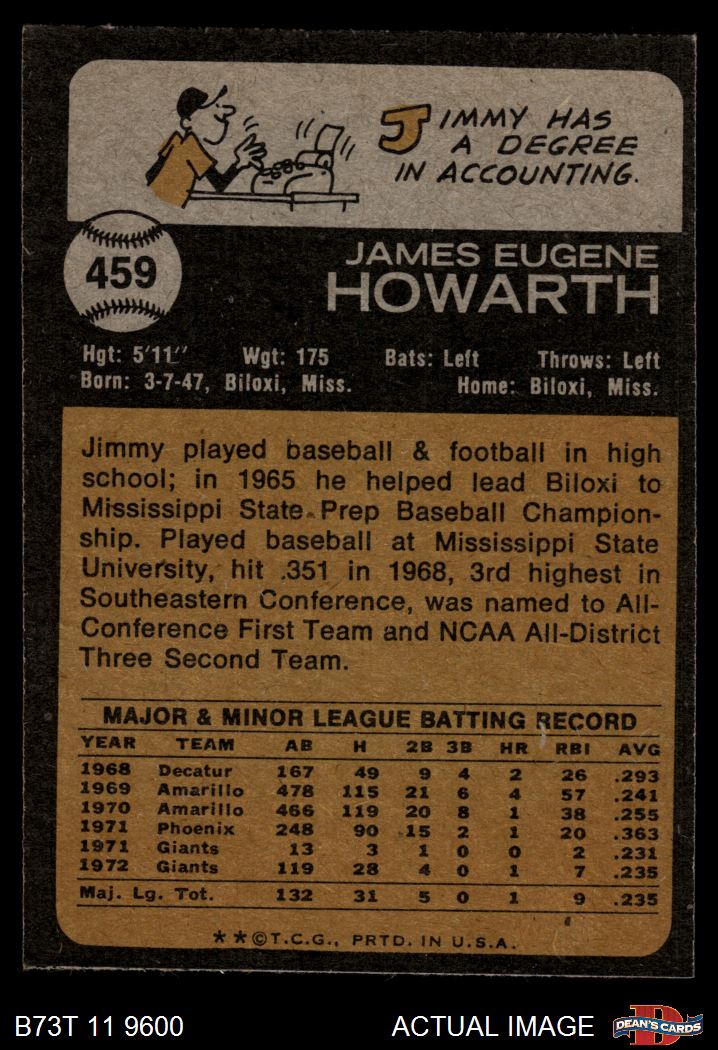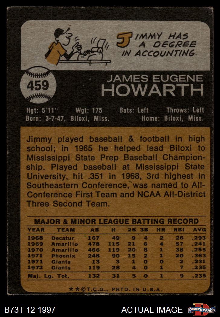 1973 Topps #459 Jimmy Howarth