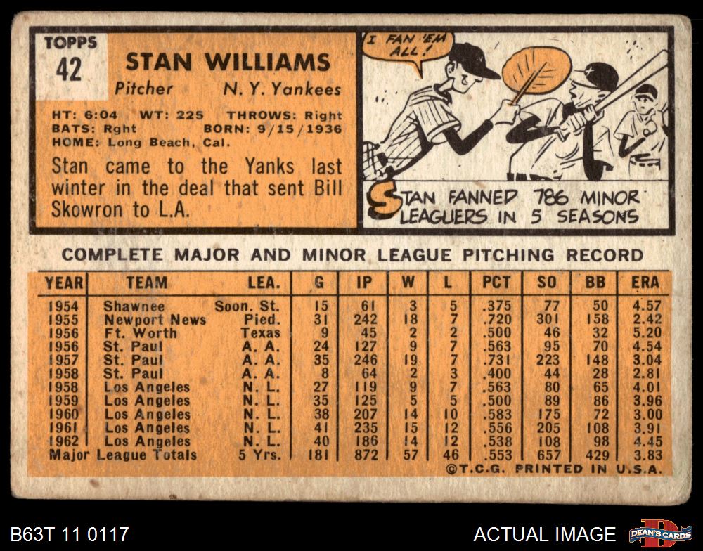 1963 Topps #42 Stan Williams 1 - POOR