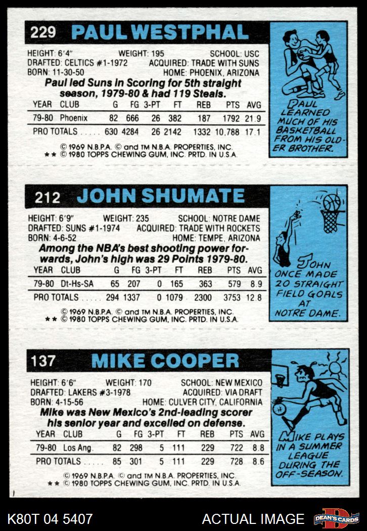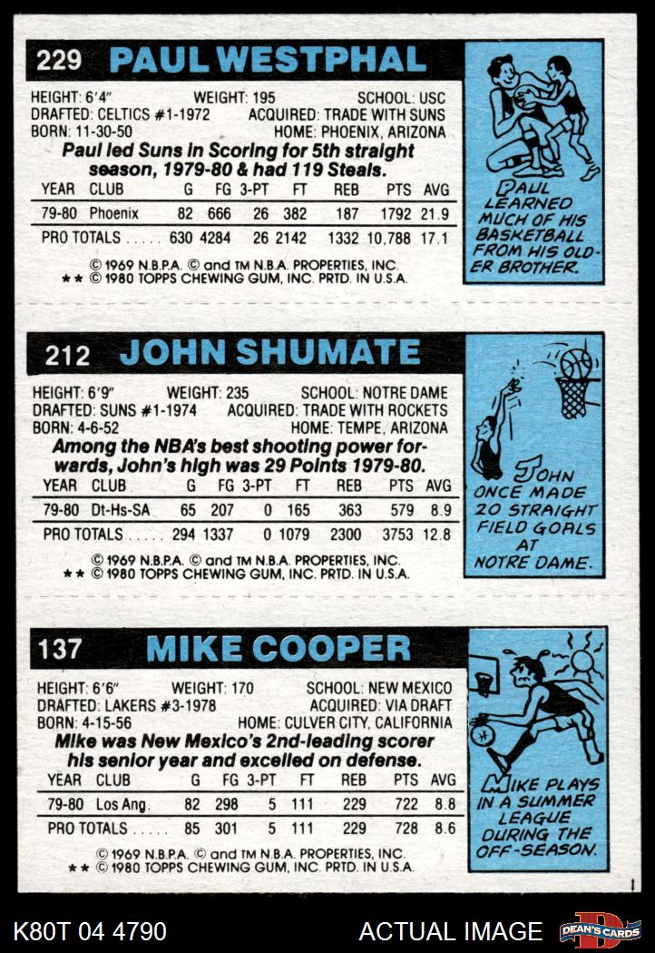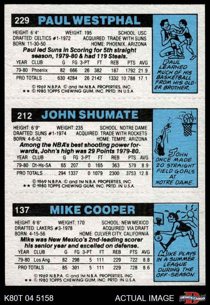 1980 Topps - Mike Cooper / John Shumate / Paul Westphal 137 / 212 / 229 7 - NM