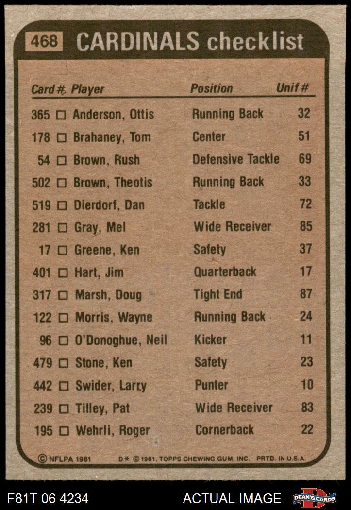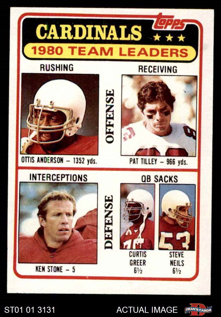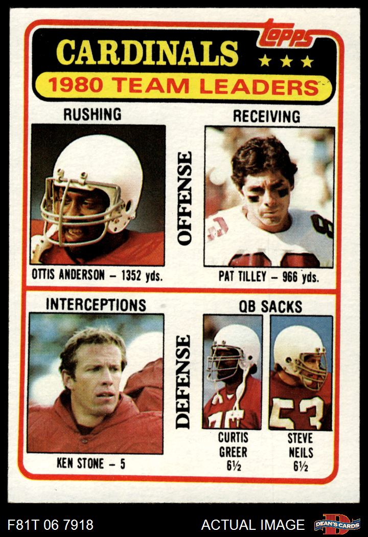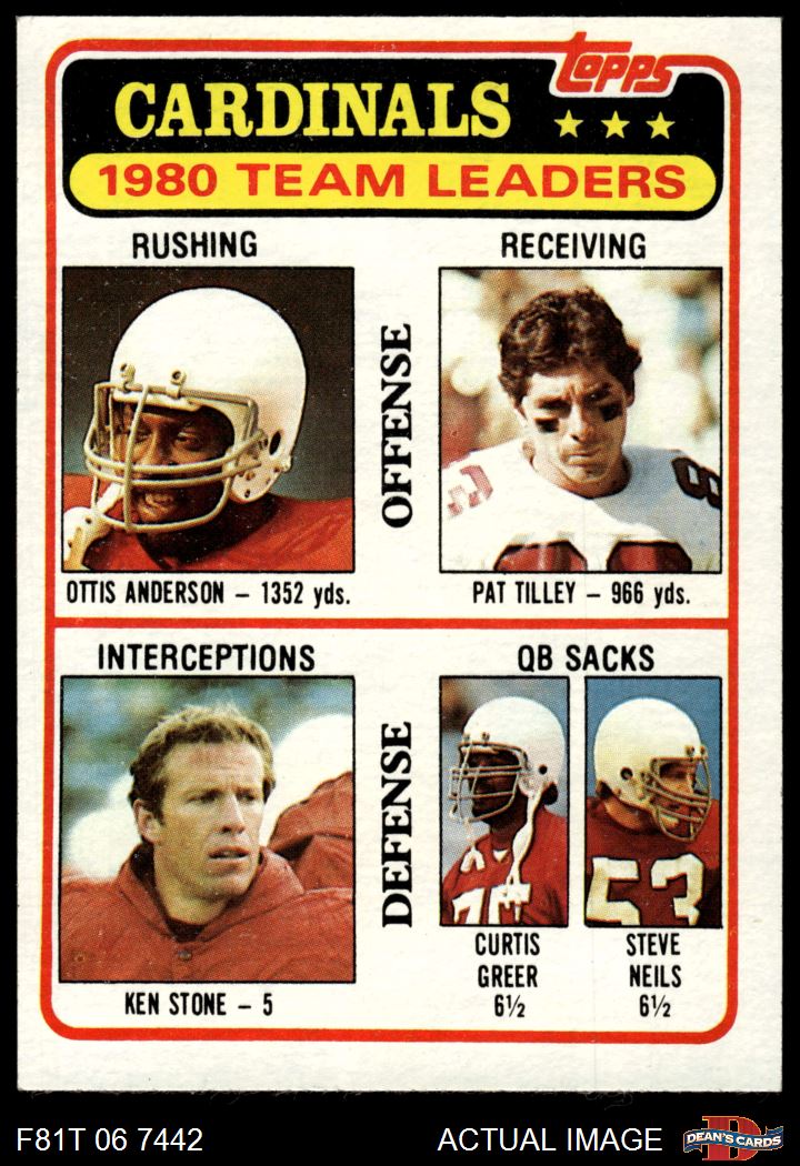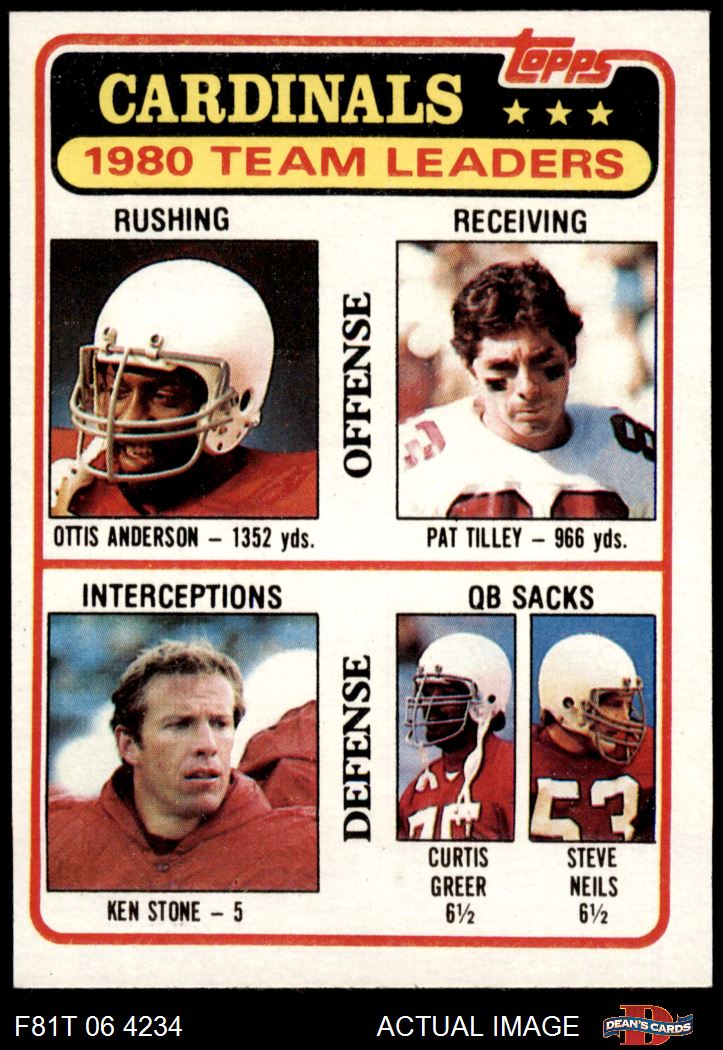 1981 Topps #468 - Ottis Anderson / Pat Tilley / Ken Stone / Curtis Greer / Steve Neils Cardinals Leaders & Checklist 7 - NM