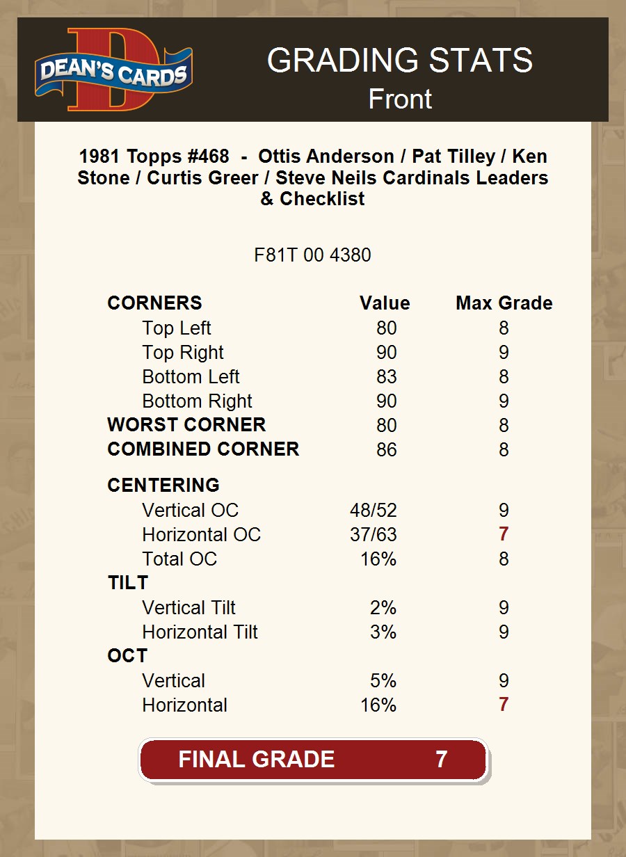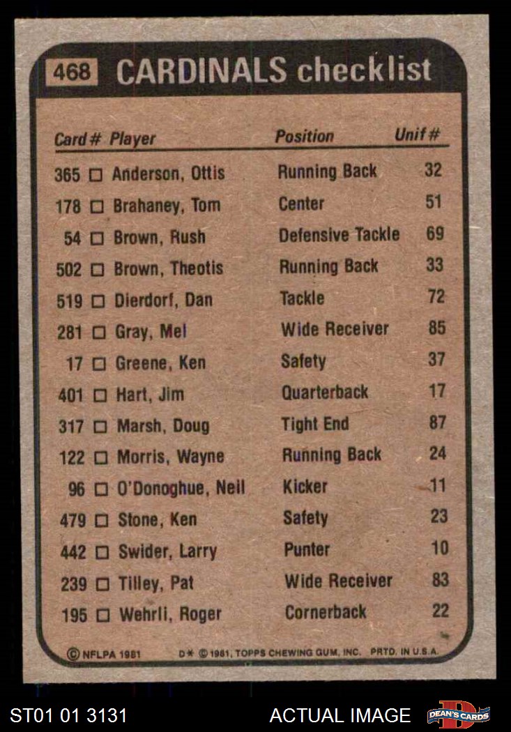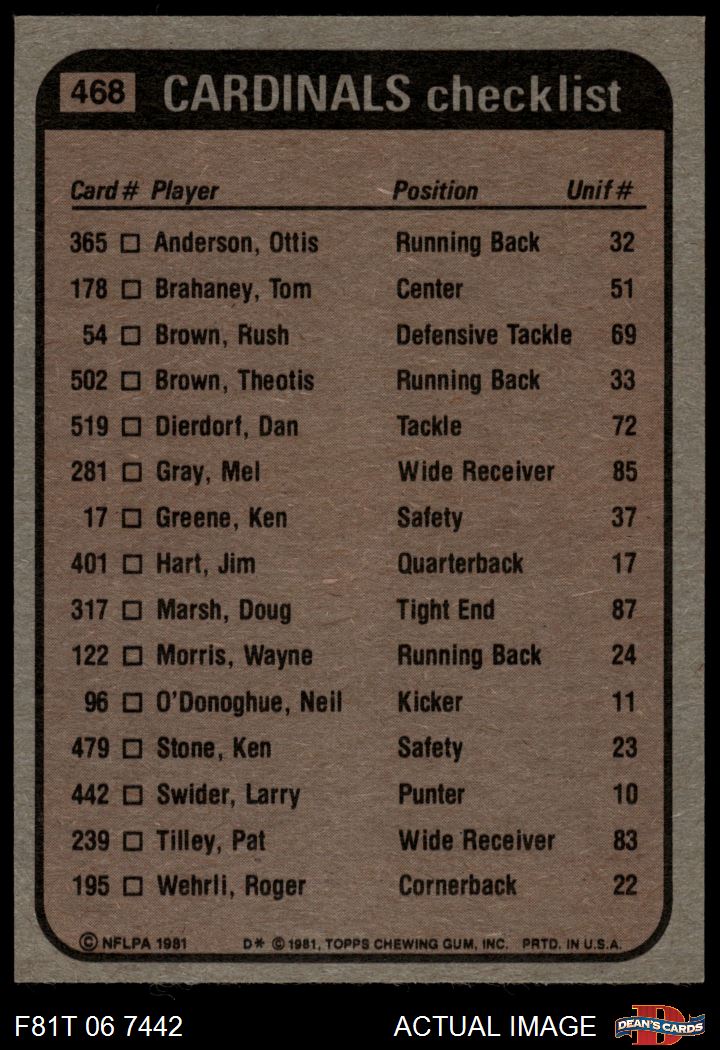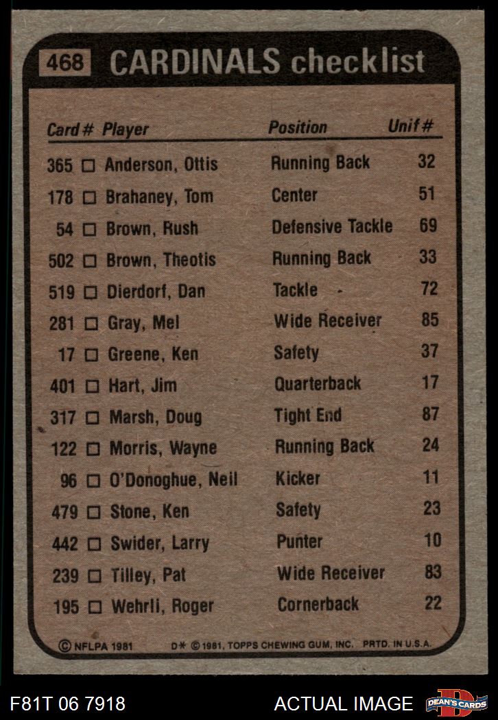 1981 Topps #468 - Ottis Anderson / Pat Tilley / Ken Stone / Curtis Greer / Steve Neils Cardinals Leaders & Checklist 7 - NM