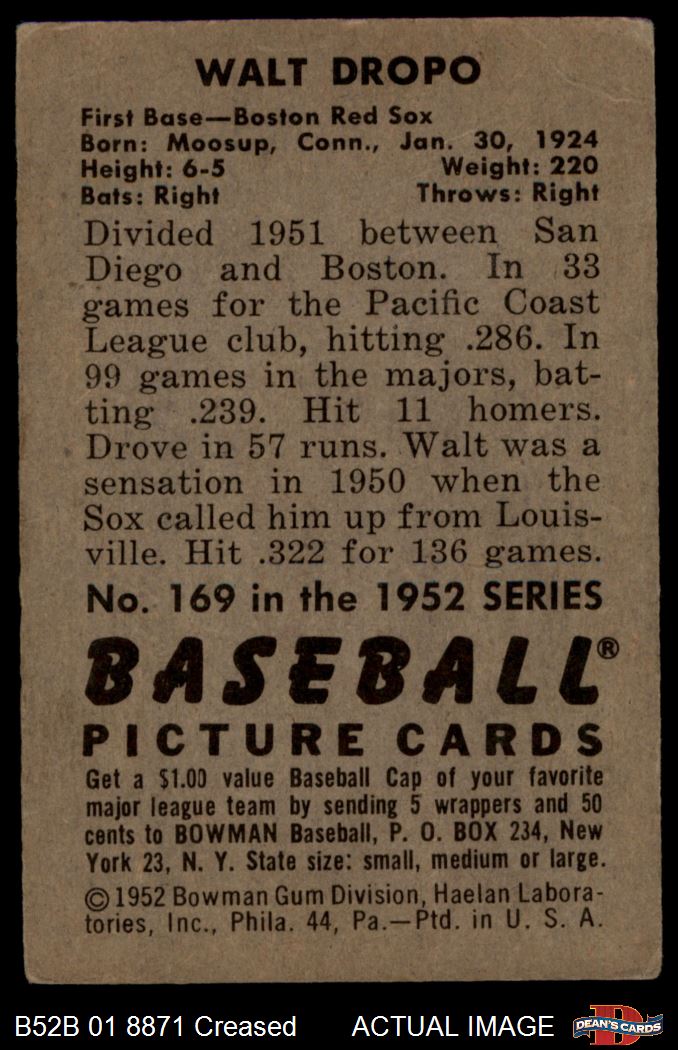 1952 Bowman #169 Walt Dropo Front Thumbnail
