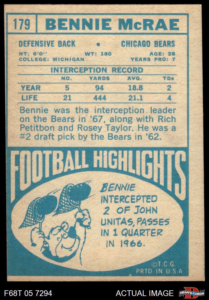 1968 Topps #179 Bennie McRae 3 - VG