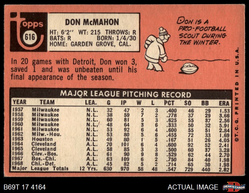 1969 Topps #616 Don McMahon 4 - VG/EX