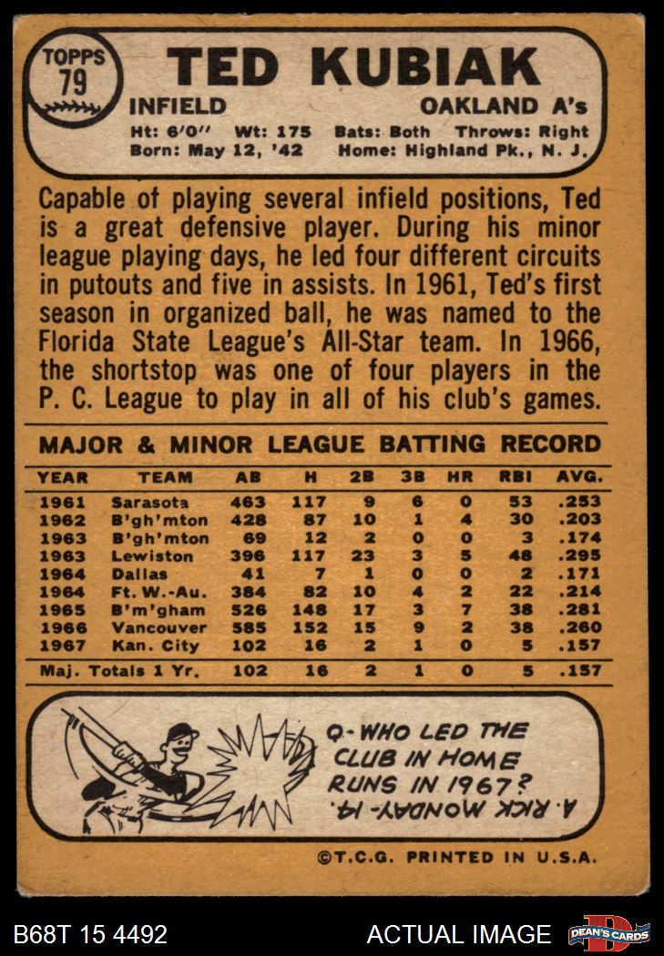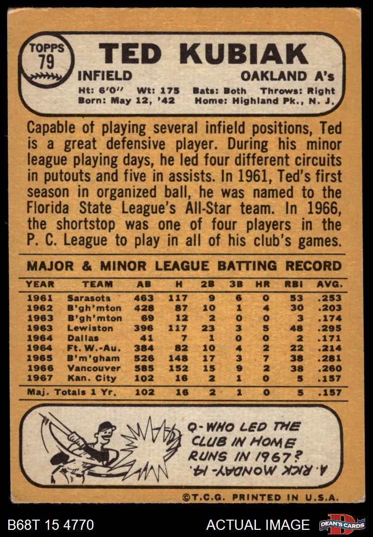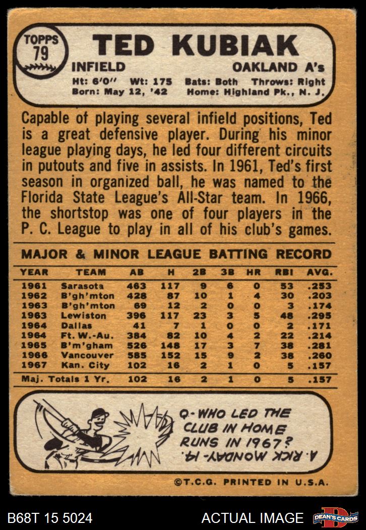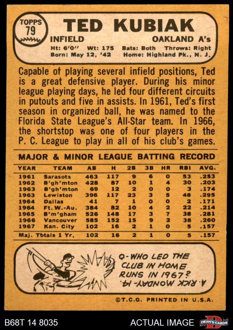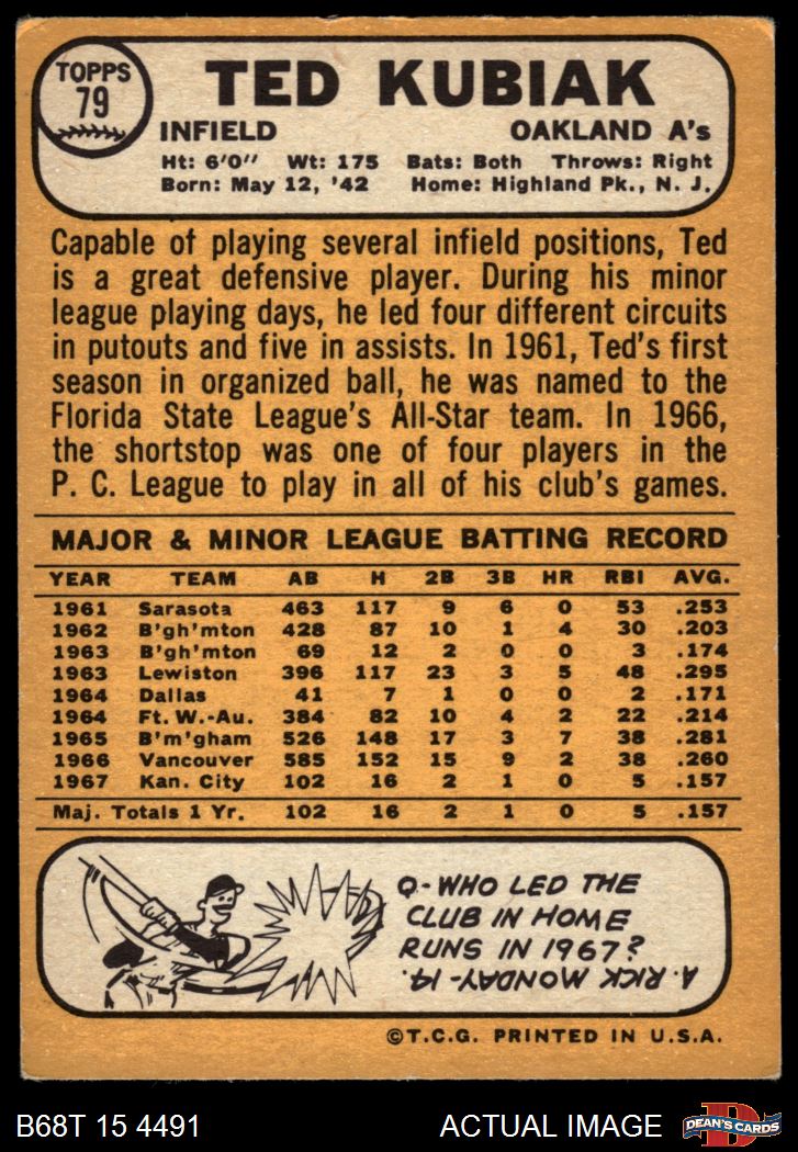 1968 Topps #79 Ted Kubiak