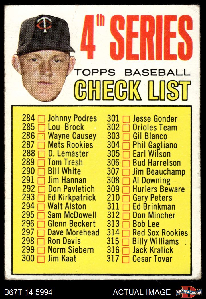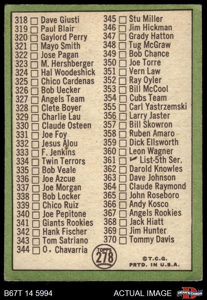 1967 Topps #278 Checklist 4