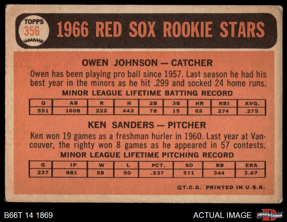 1966 Topps #356 - Ken Sanders / Owen Johnson Red Sox Rookies 2 - GOOD