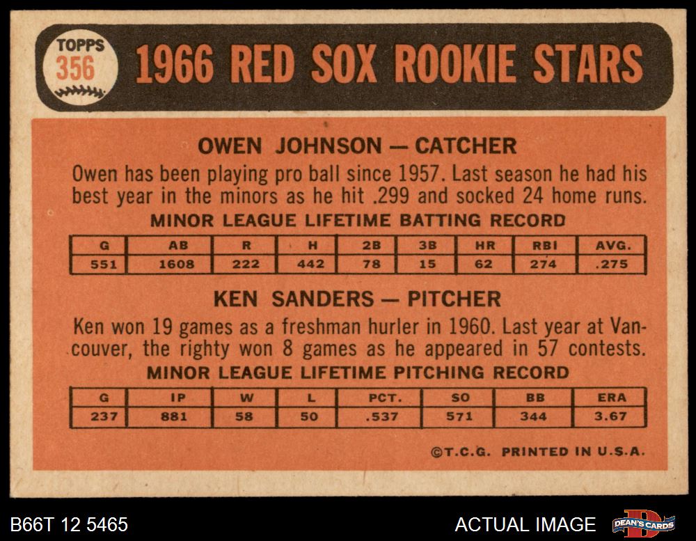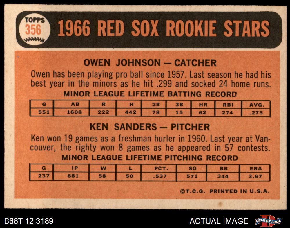 1966 Topps #356 - Ken Sanders / Owen Johnson Red Sox Rookies 5.5 - EX+