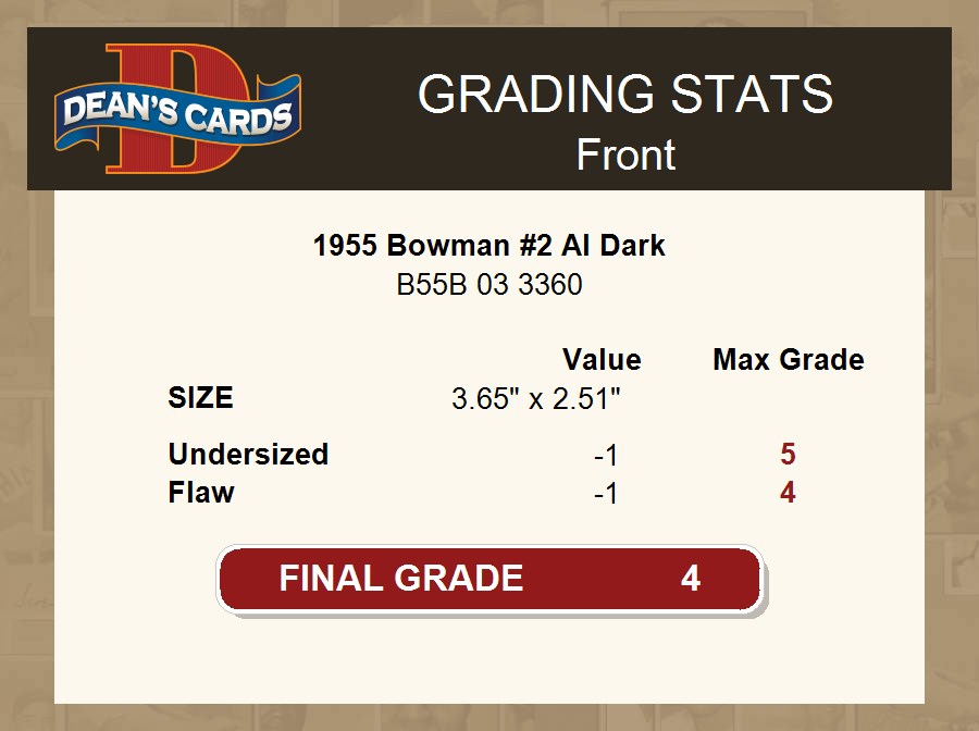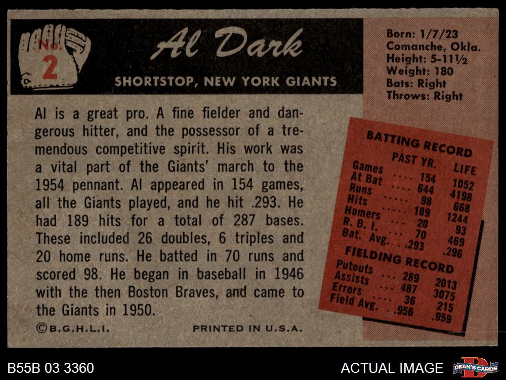 1955 Bowman #2 Al Dark 4 - VG/EX