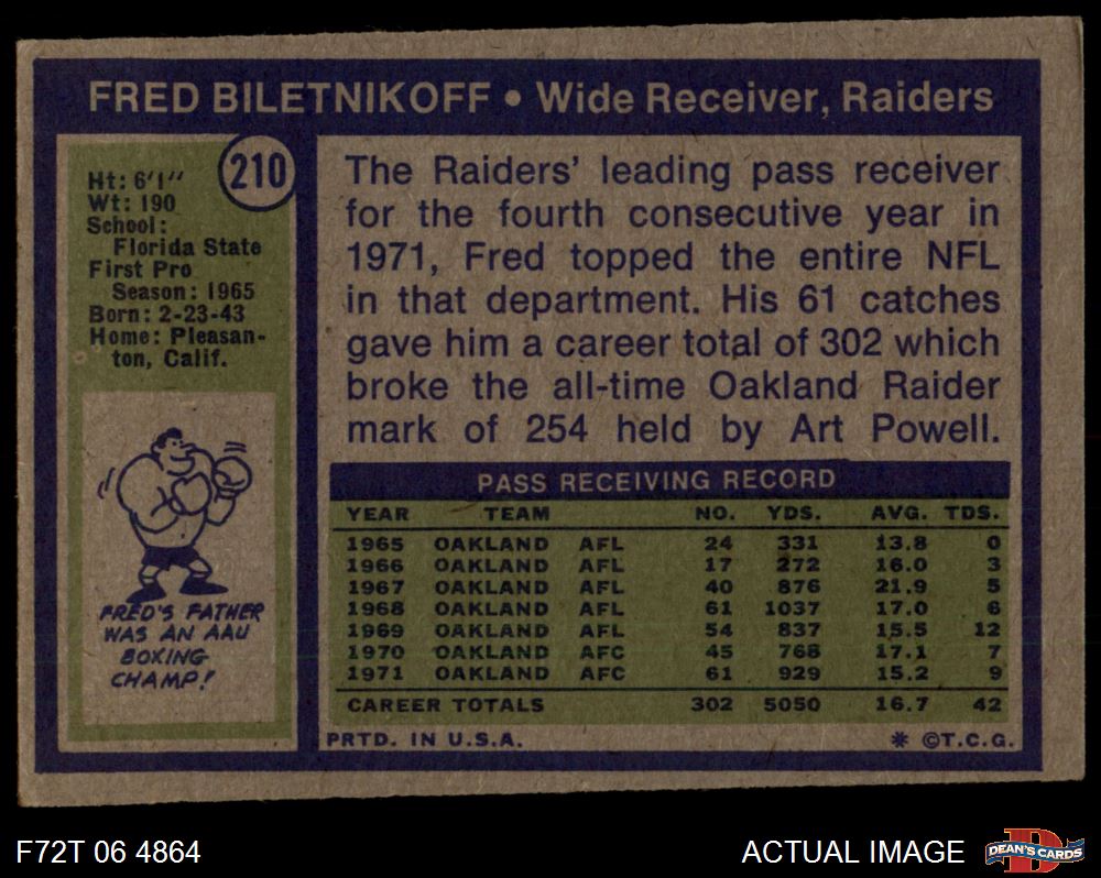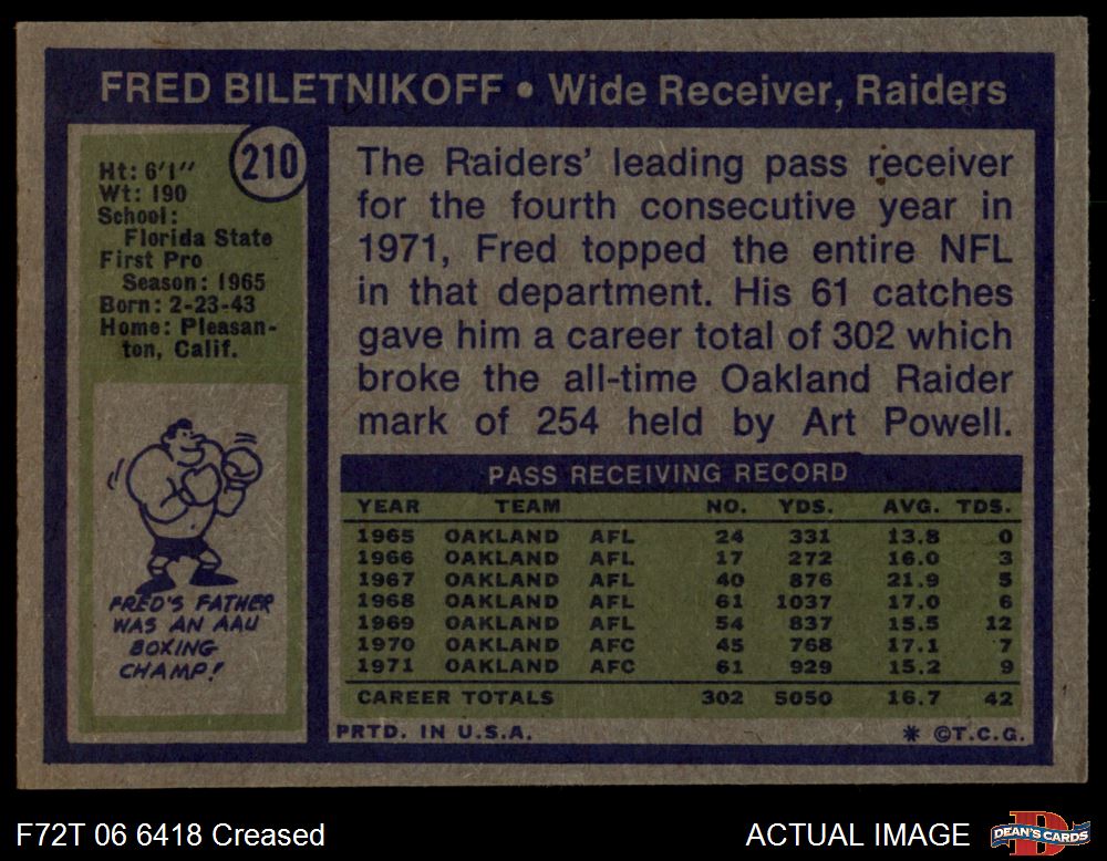 1972 Topps #210 Fred Biletnikoff 3 - VG