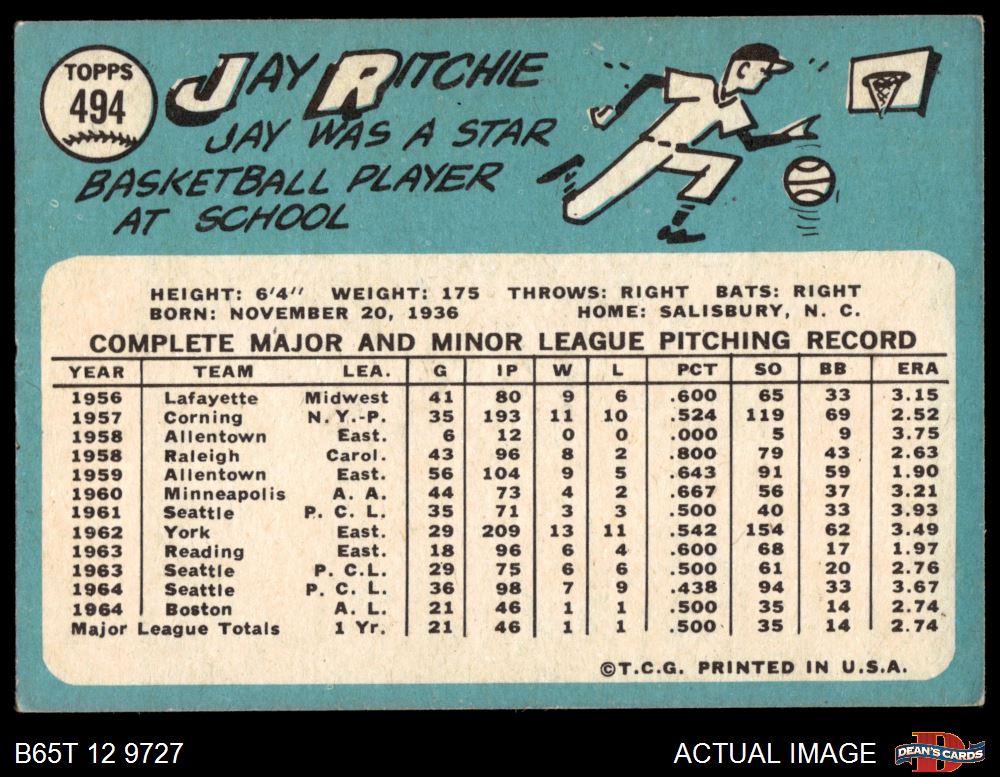 1965 Topps #494 Jay Ritchie 4 - VG/EX