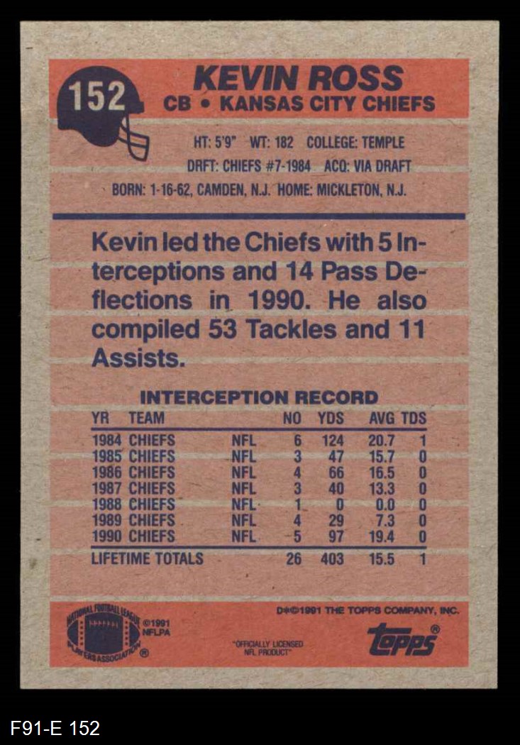 1991 Topps Football Cards (2,906 available)1991 Topps Chiefs (145 available)