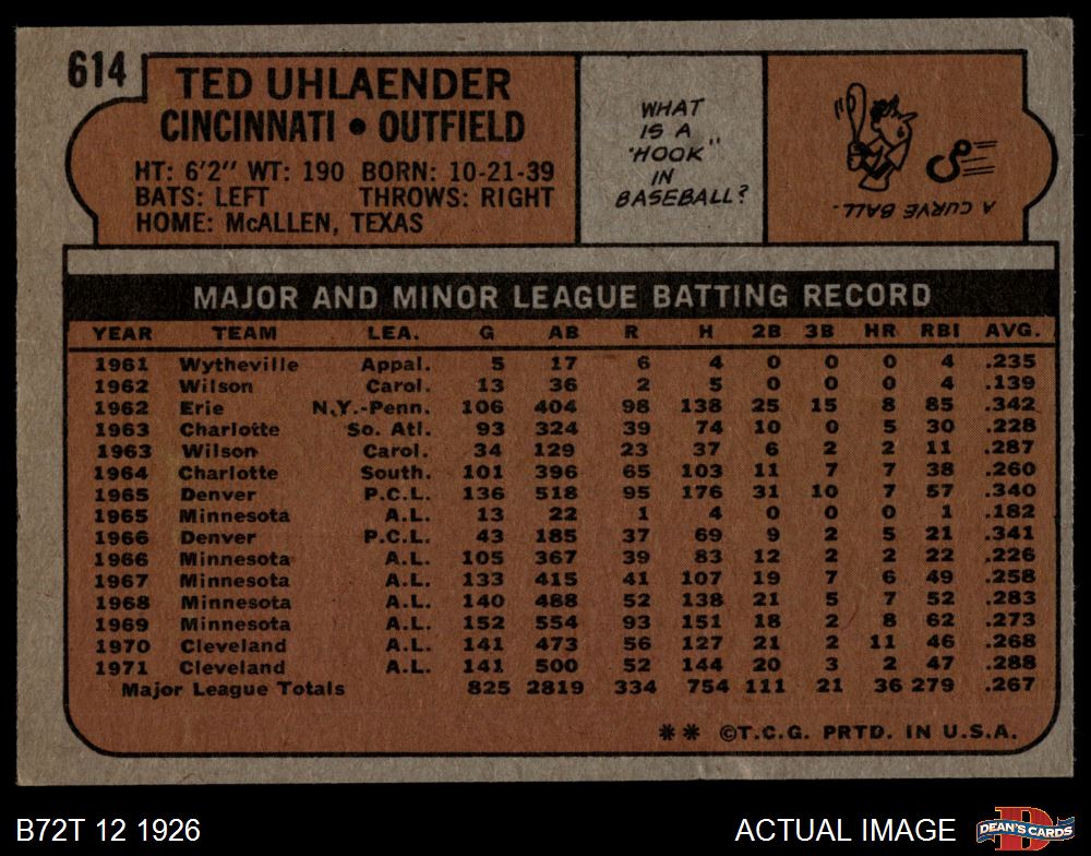 1972 Topps #614 Ted Uhlaender 4 - VG/EX