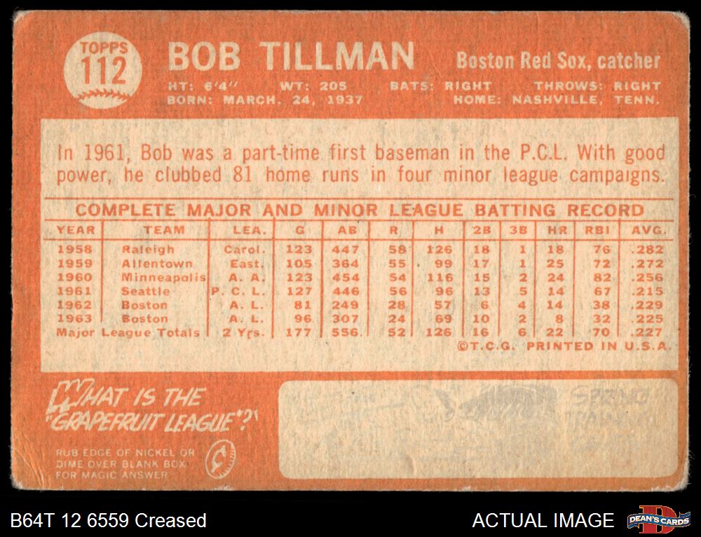 1964 Topps #112 Bob Tillman 1 - POOR