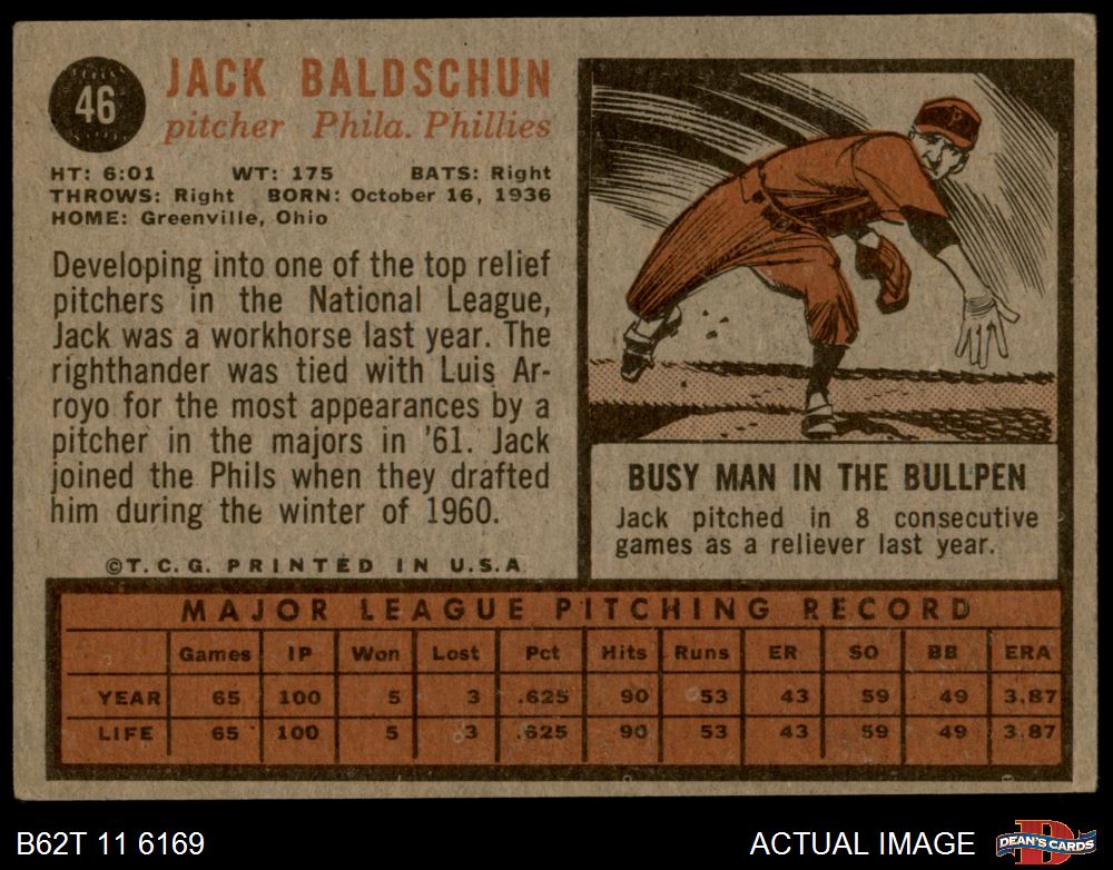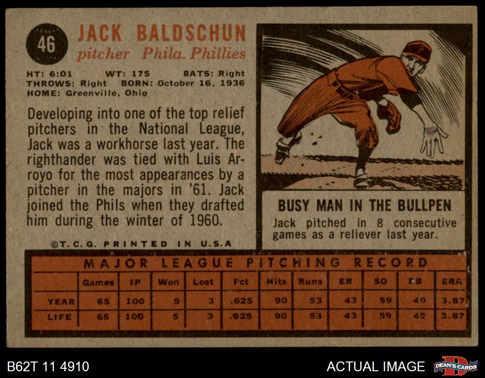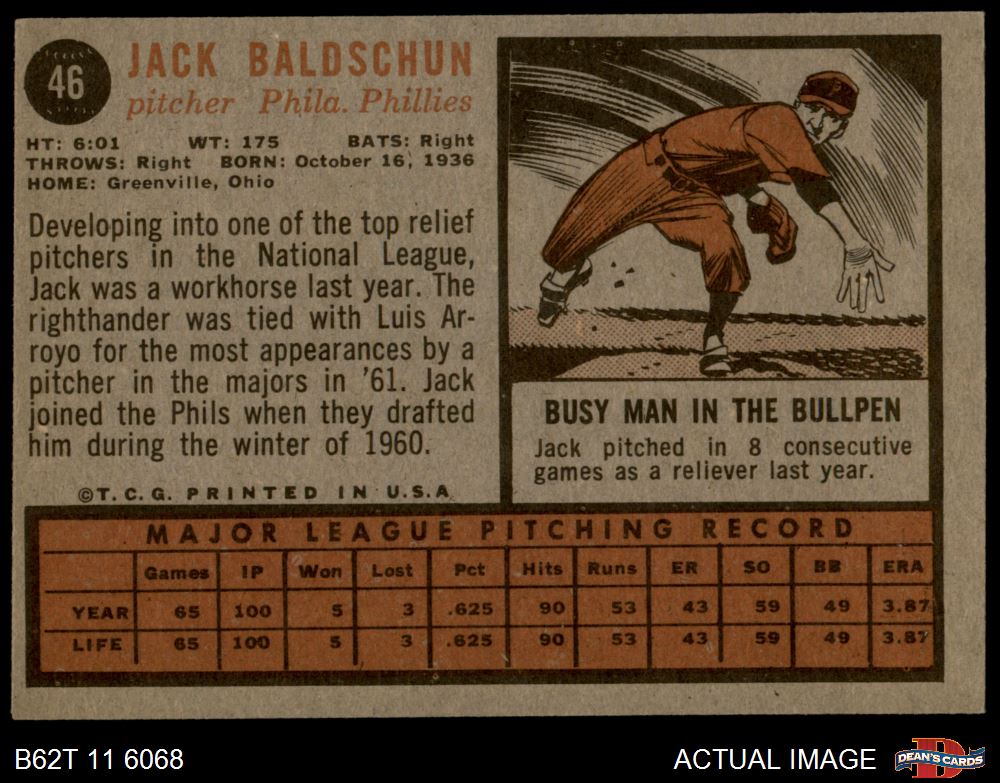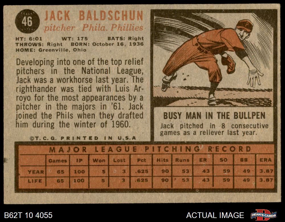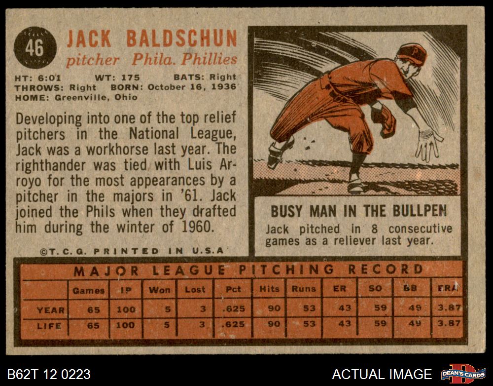 1962 Topps #46 Jack Baldschun 4 - VG/EX