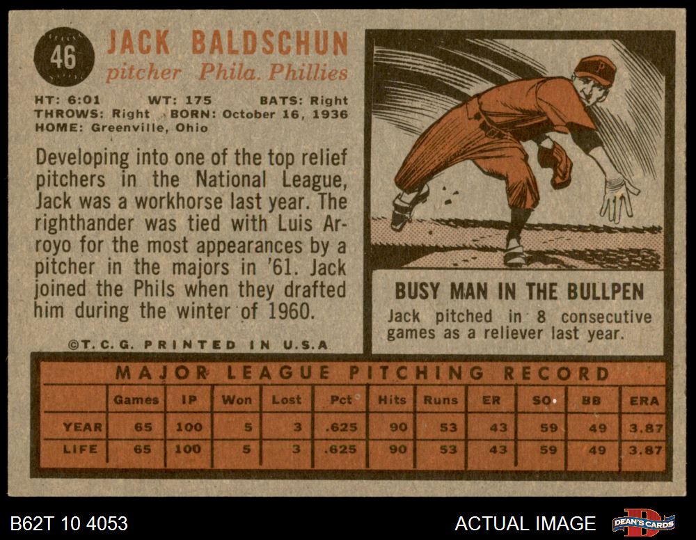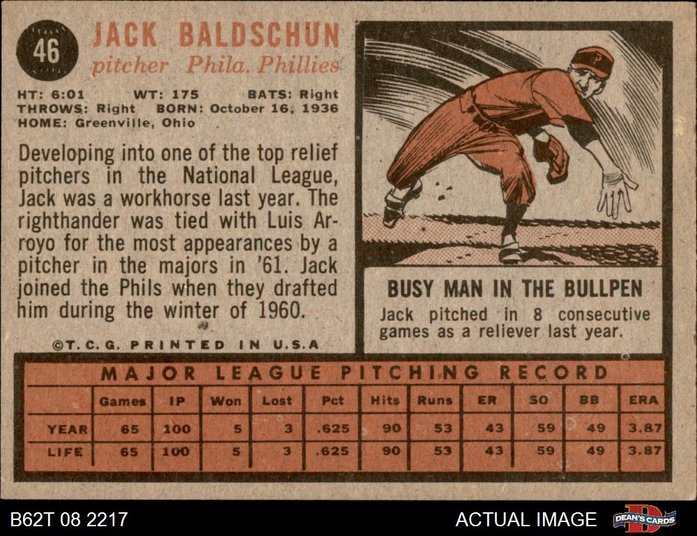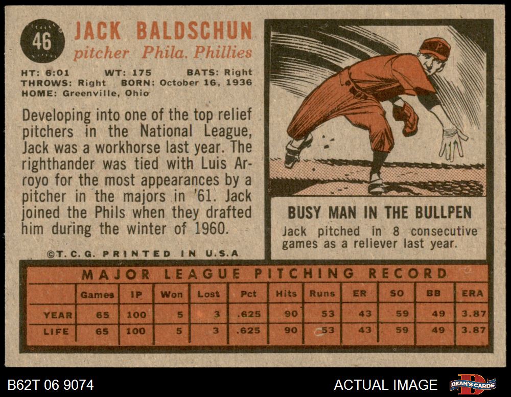1962 Topps #46 Jack Baldschun 6.5 - EX/MT+