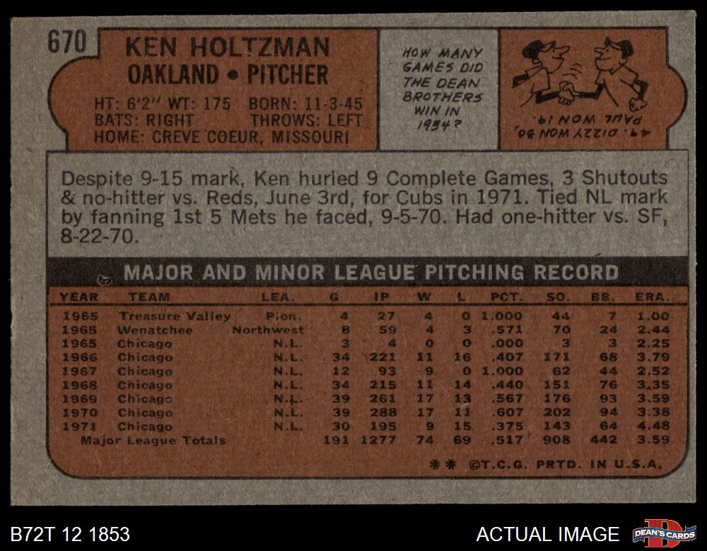 1972 Topps #670 Ken Holtzman