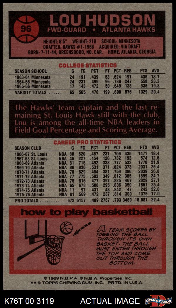 1976 Topps #96 Lou Hudson 6.5 - EX/MT+