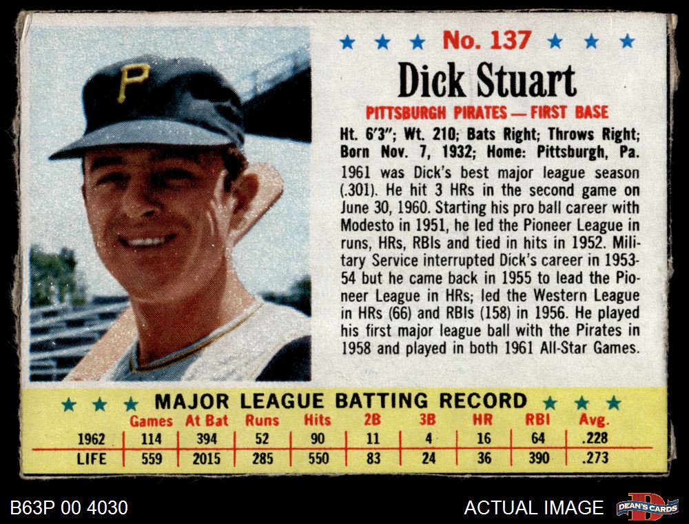 1963 Post Cereal #137 Dick Stuart