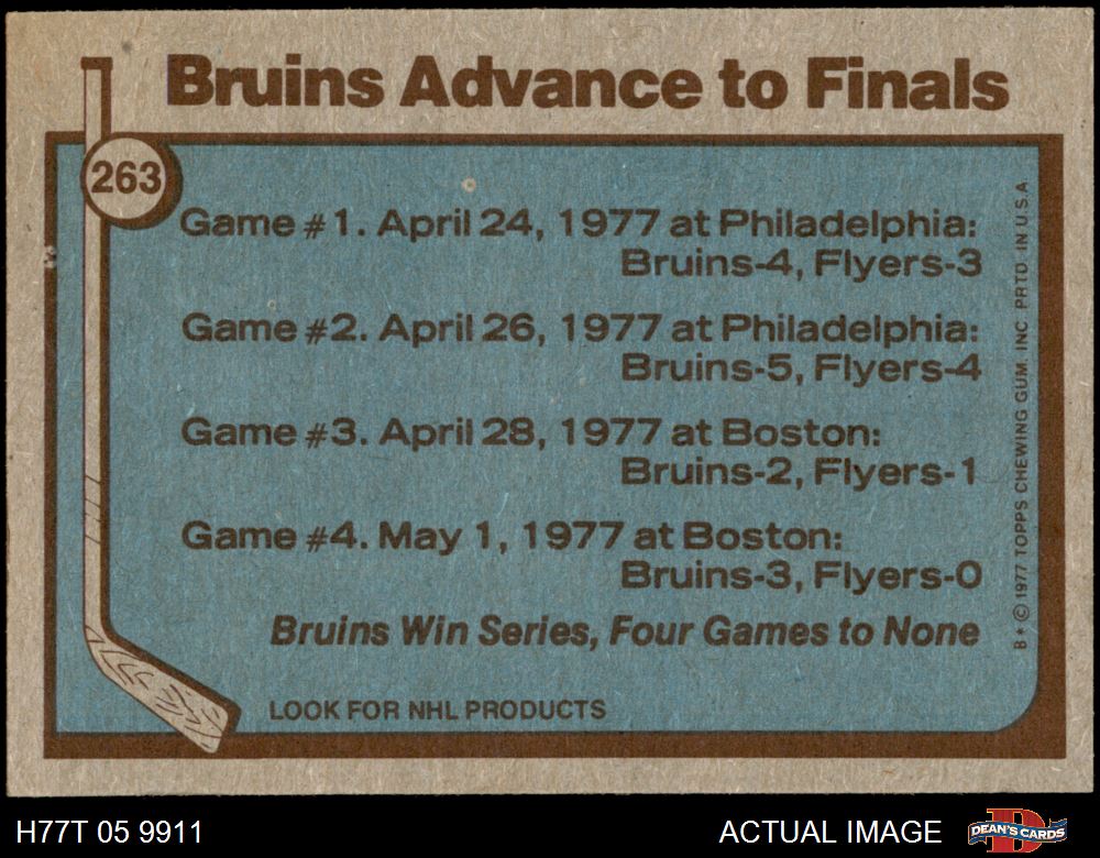 1977 Topps #263 Stanley Cup Semi-Finals - Bruins Advance to Finals