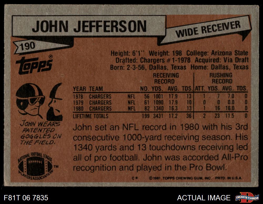 1981 Topps #190 John Jefferson 3.5 - VG+