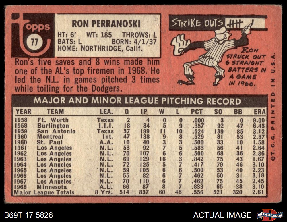 1969 Topps #77 xLA Ron Perranoski 1.5 - FAIR