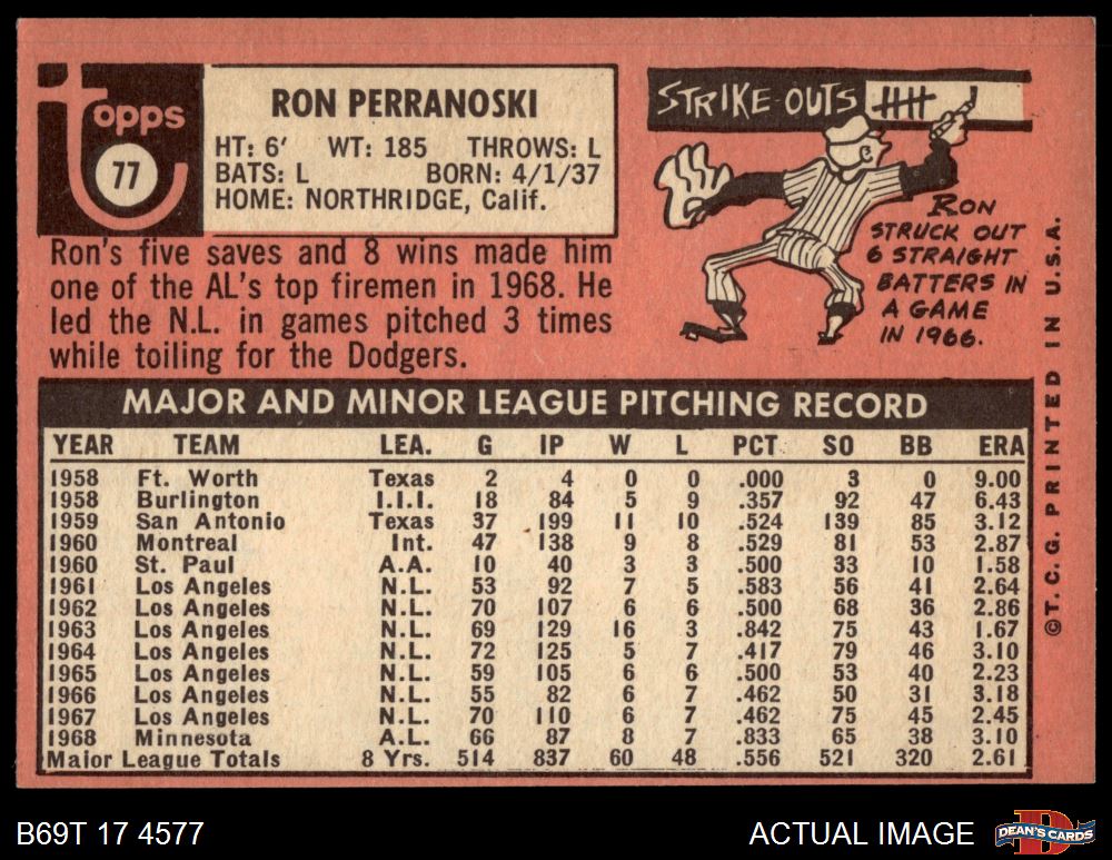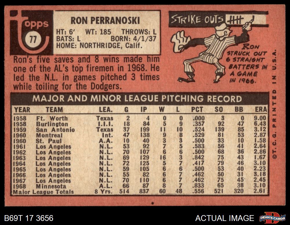 1969 Topps #77 xLA Ron Perranoski