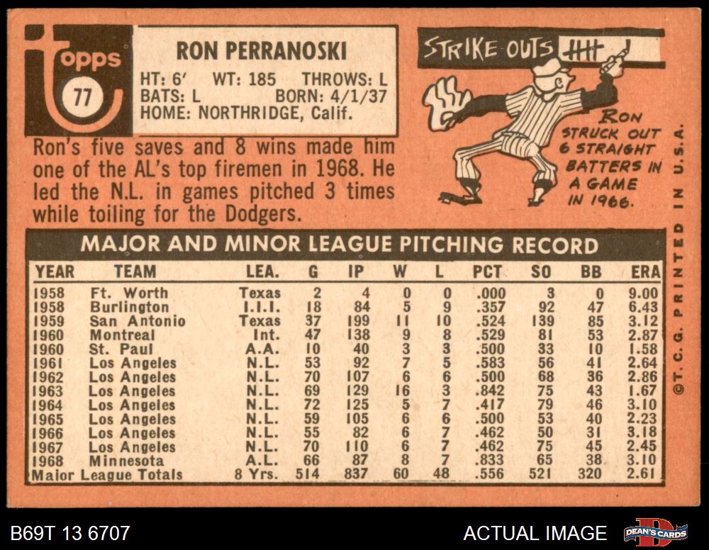 1969 Topps #77 xLA Ron Perranoski 5.5 - EX+