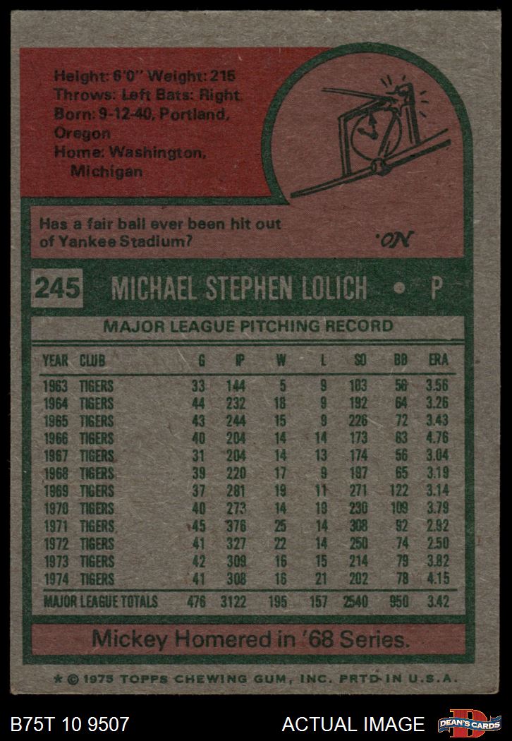 1975 Topps #245 Mickey Lolich 4 - VG/EX