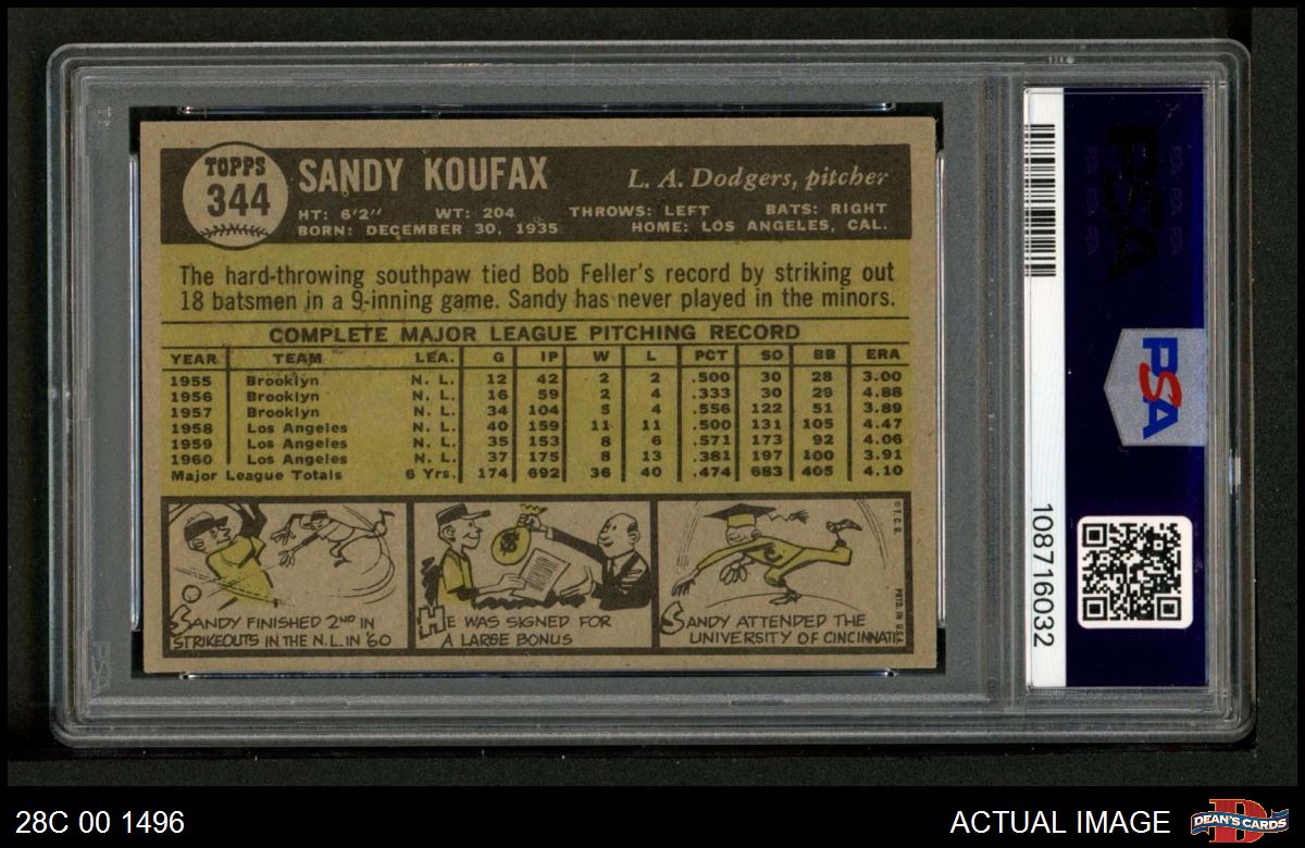 1961 Topps #344 Sandy Koufax PSA 5 - EX