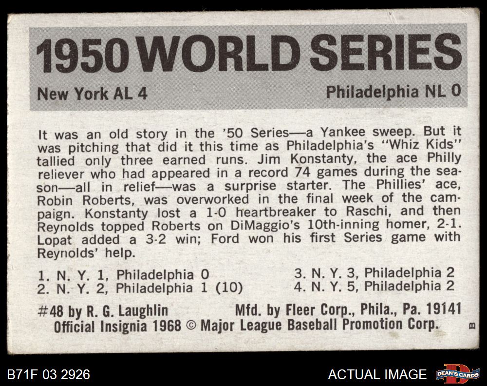 1971 Fleer World Series #48 1950 Yankees / Phillies 3 - VG