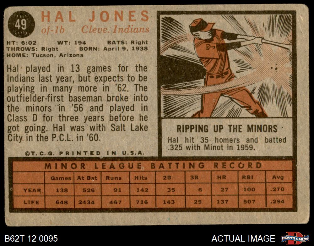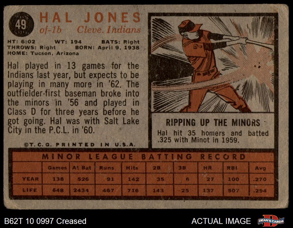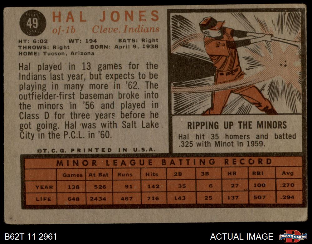 1962 Topps #49 Hal Jones 1 - POOR