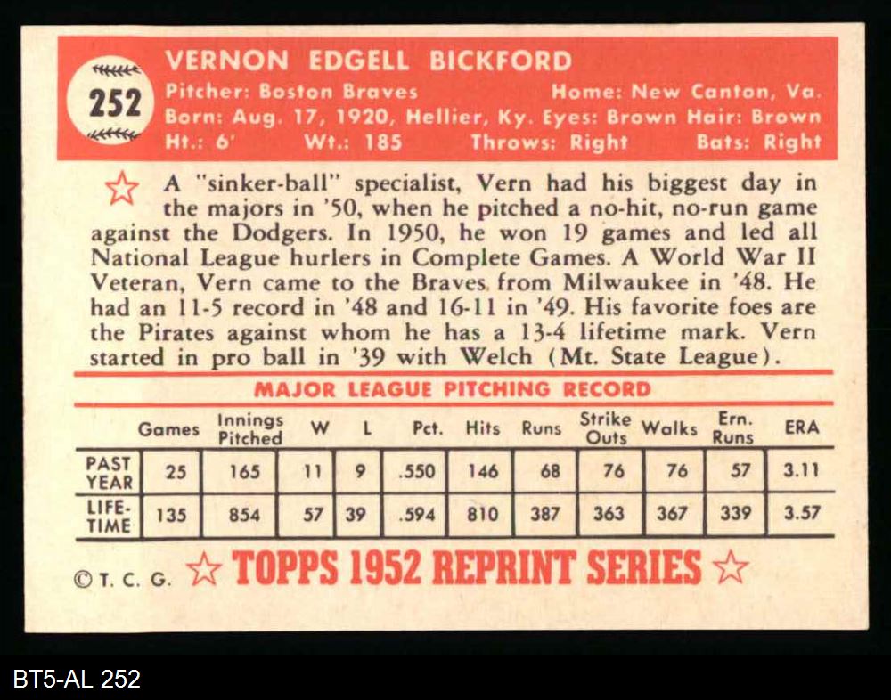 1952 Topps Reprint (1,685 available)1952 Topps REPRINT Braves (69 available)