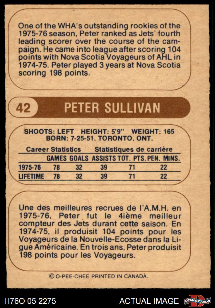 1976 O-Pee-Chee WHA #42 Peter Sullivan 6 - EX/MT