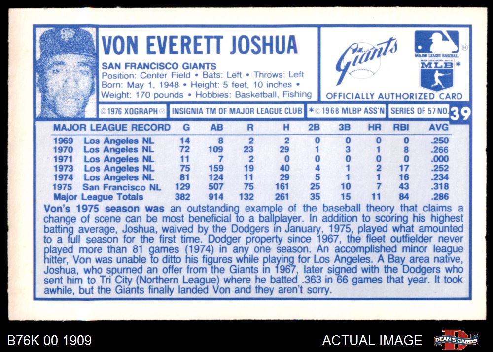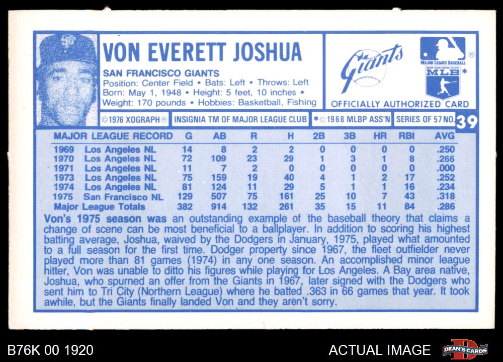 1976 Kellogg's #39 Von Joshua 2 - GOOD