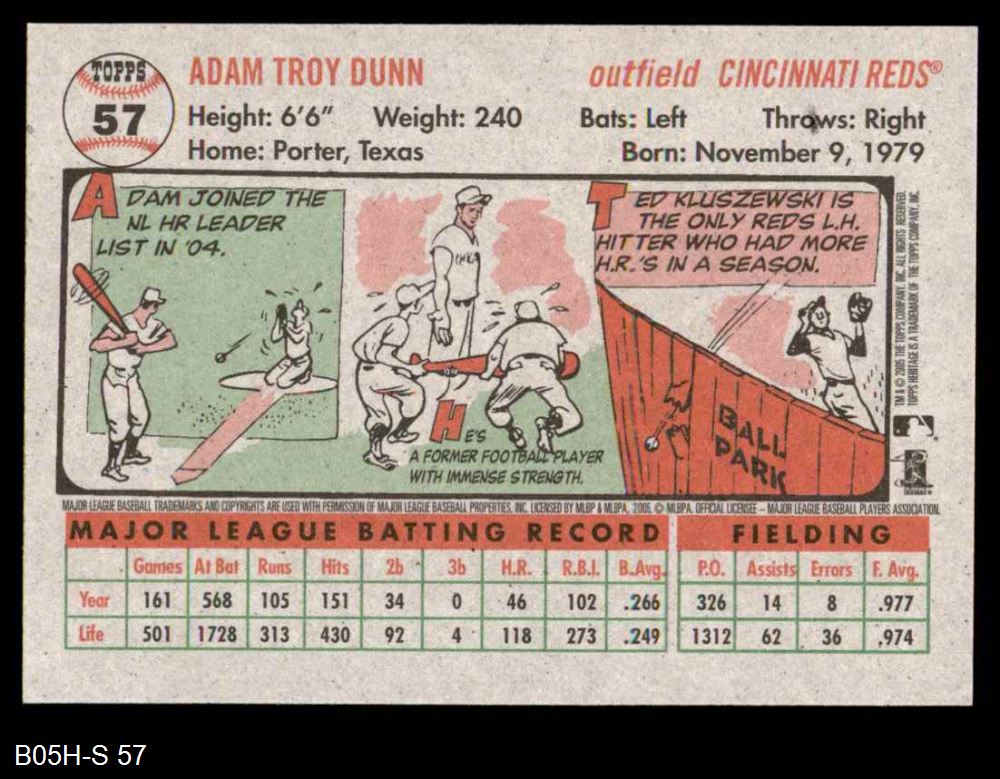 2005 Topps Heritage #57 Adam Dunn 8 - NM/MT