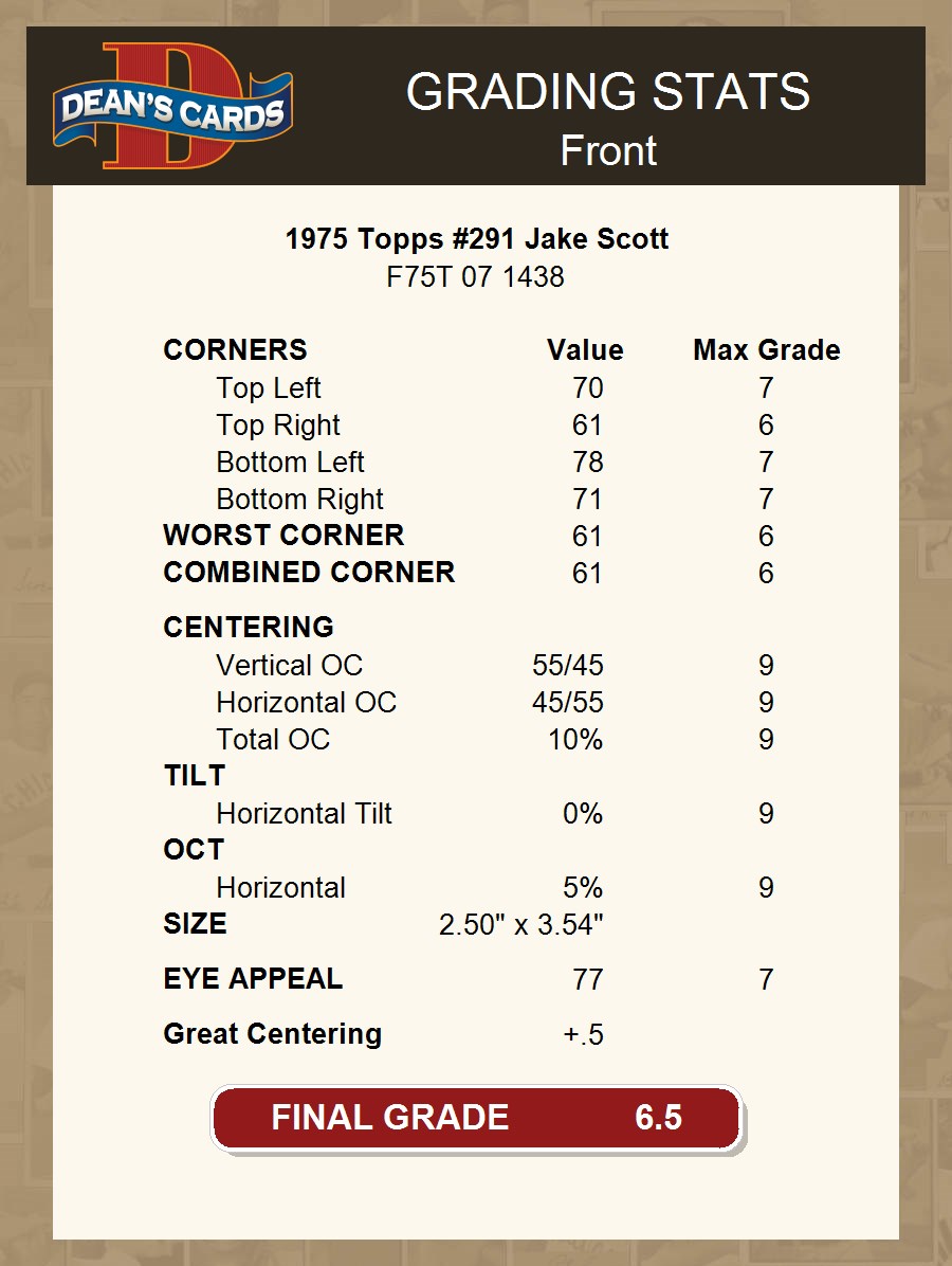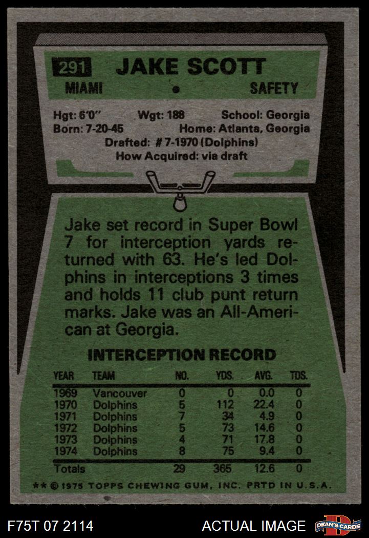 1975 Topps #291 Jake Scott 6.5 - EX/MT+