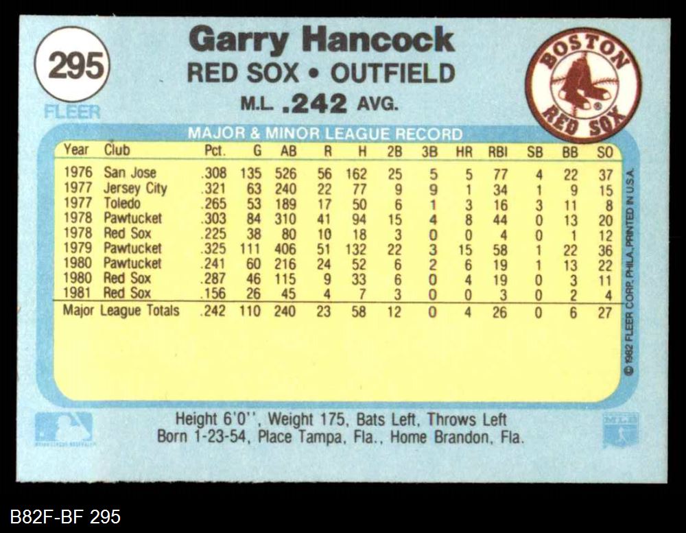 1982 Fleer #295 Garry Hancock