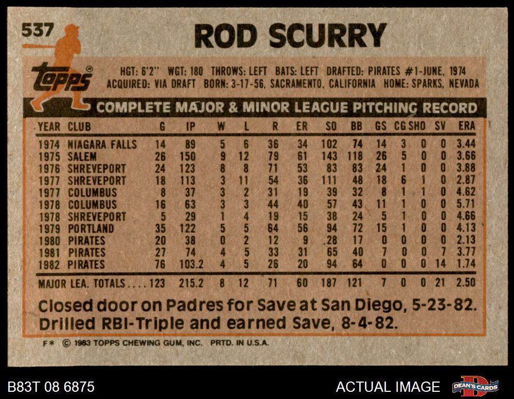 1983 Topps #537 Rod Scurry 7 - NM