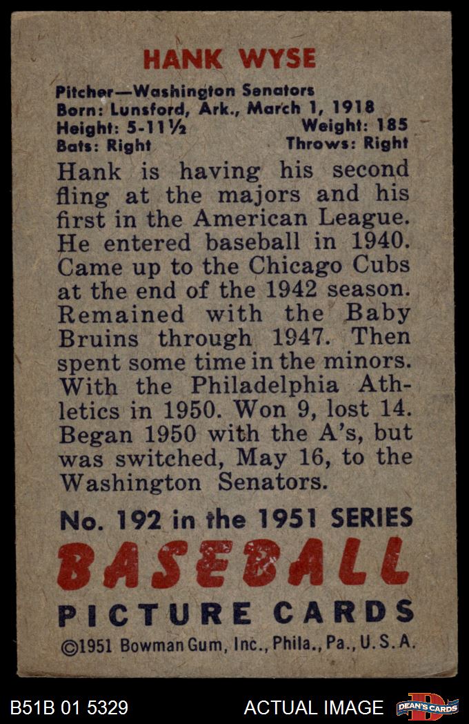 1951 Bowman Baseball Cards (1,846 available)1951 Bowman Senators (205 available)