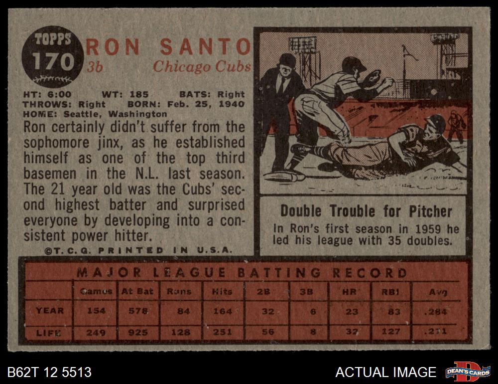 1962 Topps #170 NRM Ron Santo 4 - VG/EX