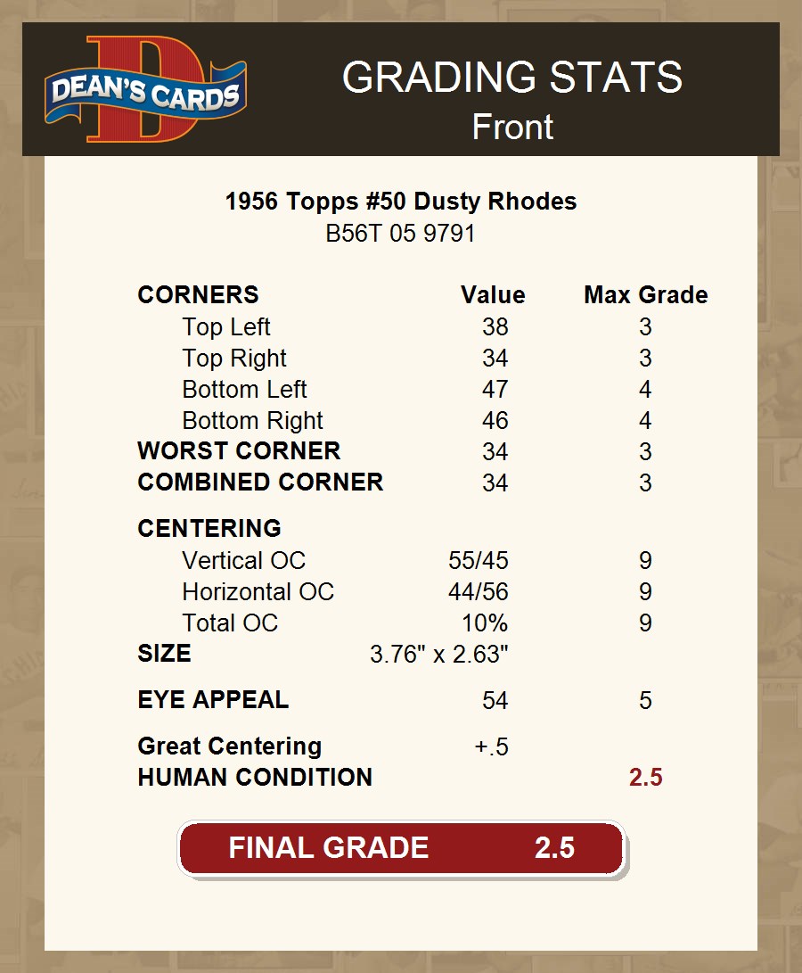 1956 Topps #50 Dusty Rhodes 2.5 - GD+