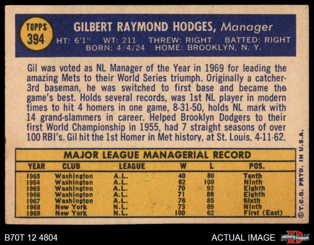 1970 Topps #394 Gil Hodges 6 - EX/MT