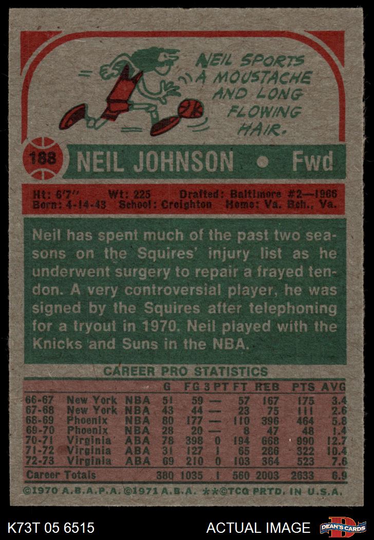 1973 Topps #188 Neil Johnson